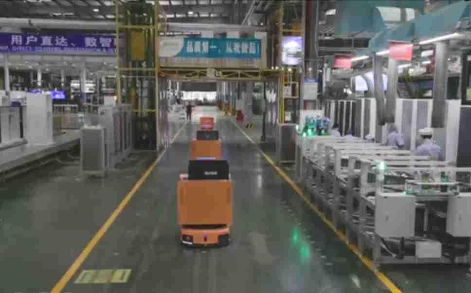 为车载冰箱物流配送打造的智能解决方案,,包含产中物流通过潜伏举升AMR搬运至线边,,,产后成品物流智能仓储,,流程包含产中物流智能齐套入库,,线边安灯叫料AMR智能配送至线边,,成品入库、、、出库,,通过无人堆高车机器人,,,智能仓储管理替代人工作业管理,,,,实现更高存储、、、、更高效率、、、更具柔性化的解决方案。。。。